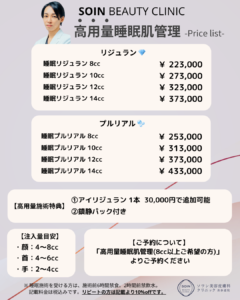 この度、リジュラン/プルリアルにつきまして、顔面のフェイスライン含めた全範囲施術、首や手のアンチエイジング含めた6ccを超える薬剤量施術のご要望があったことから、